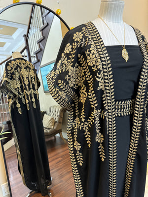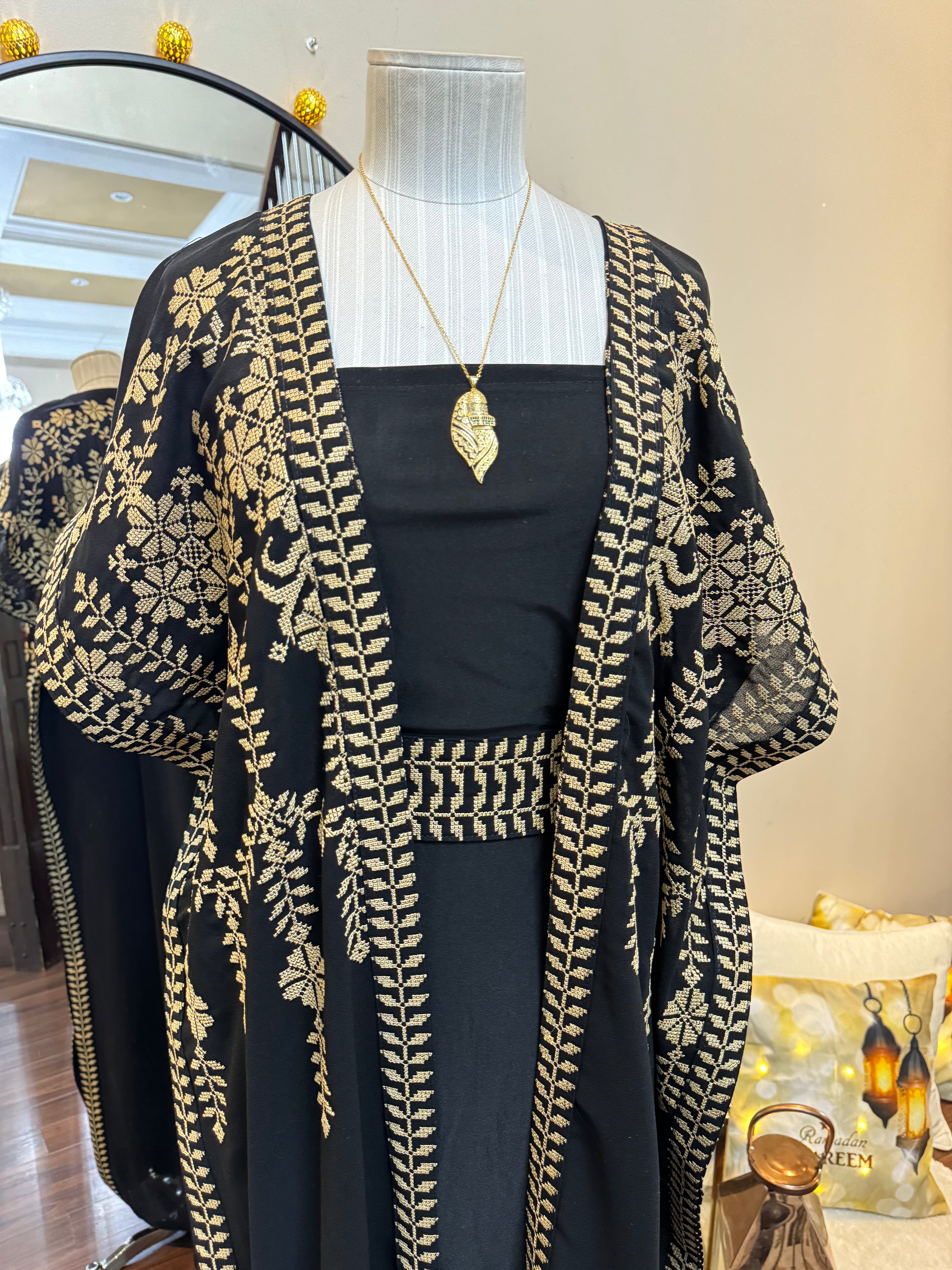 Palestinian Embroidered Black Bisht with Golden Sable Pattern