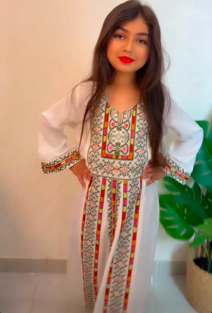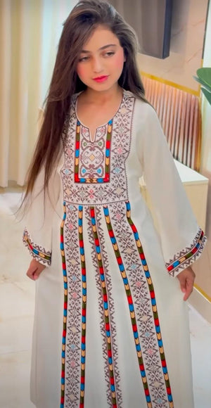 Elevate your child's style with our exquisite Embroidery Palestinian Girl Dress. Featuring stunning tatreez embroidery, this traditional dress celebrates Palestinian heritage. It offers a comfortable fit and long-lasting durability with high-quality materials. Perfect for special occasions, this dress is a masterpiece of cultural traditions. Let your child embrace their roots.