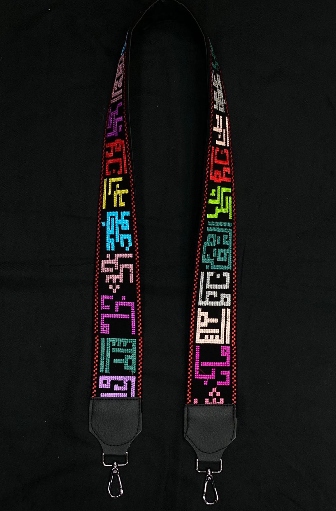 Add a touch of culture and elegance to your bag or camera with this embroidered Palestinian strap. Featuring the names of Palestinian cities beautifully stitched, this strap is a symbol of heritage and pride. The back is lined with high-quality leather for extra durability and comfort.