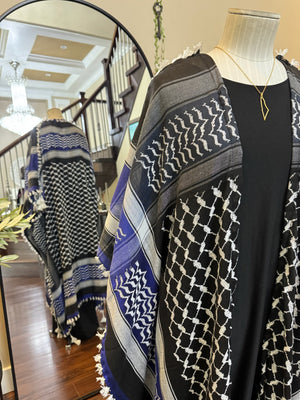 Elevate your style with this Long Koffiyeh (Bisht), a timeless symbol of Palestinian heritage, identity, and resistance. Designed for all sizes, this elegant piece is perfect for everyday wear and special occasions. Made from high-quality fabric, it drapes beautifully, offering both comfort and cultural significance.