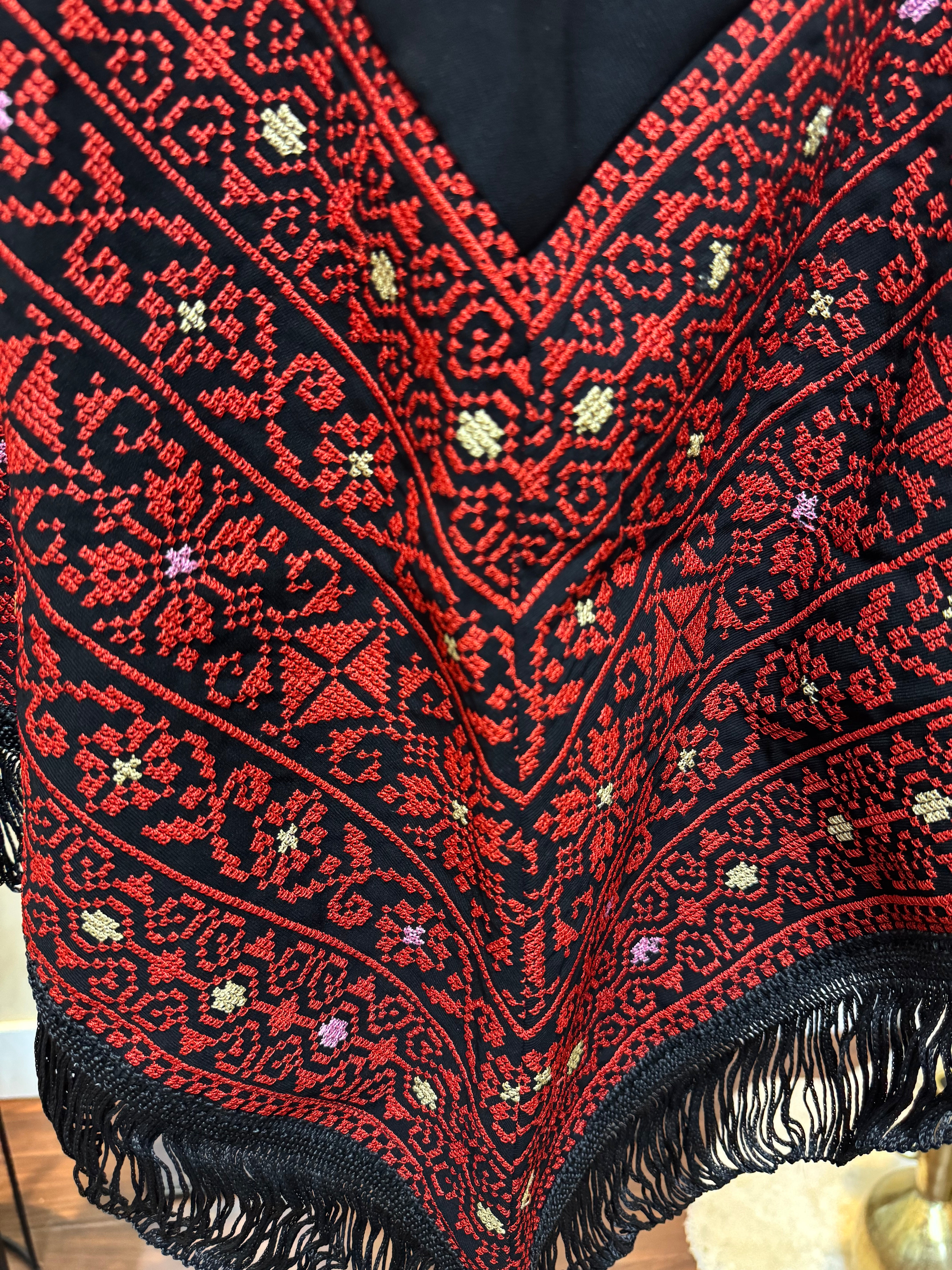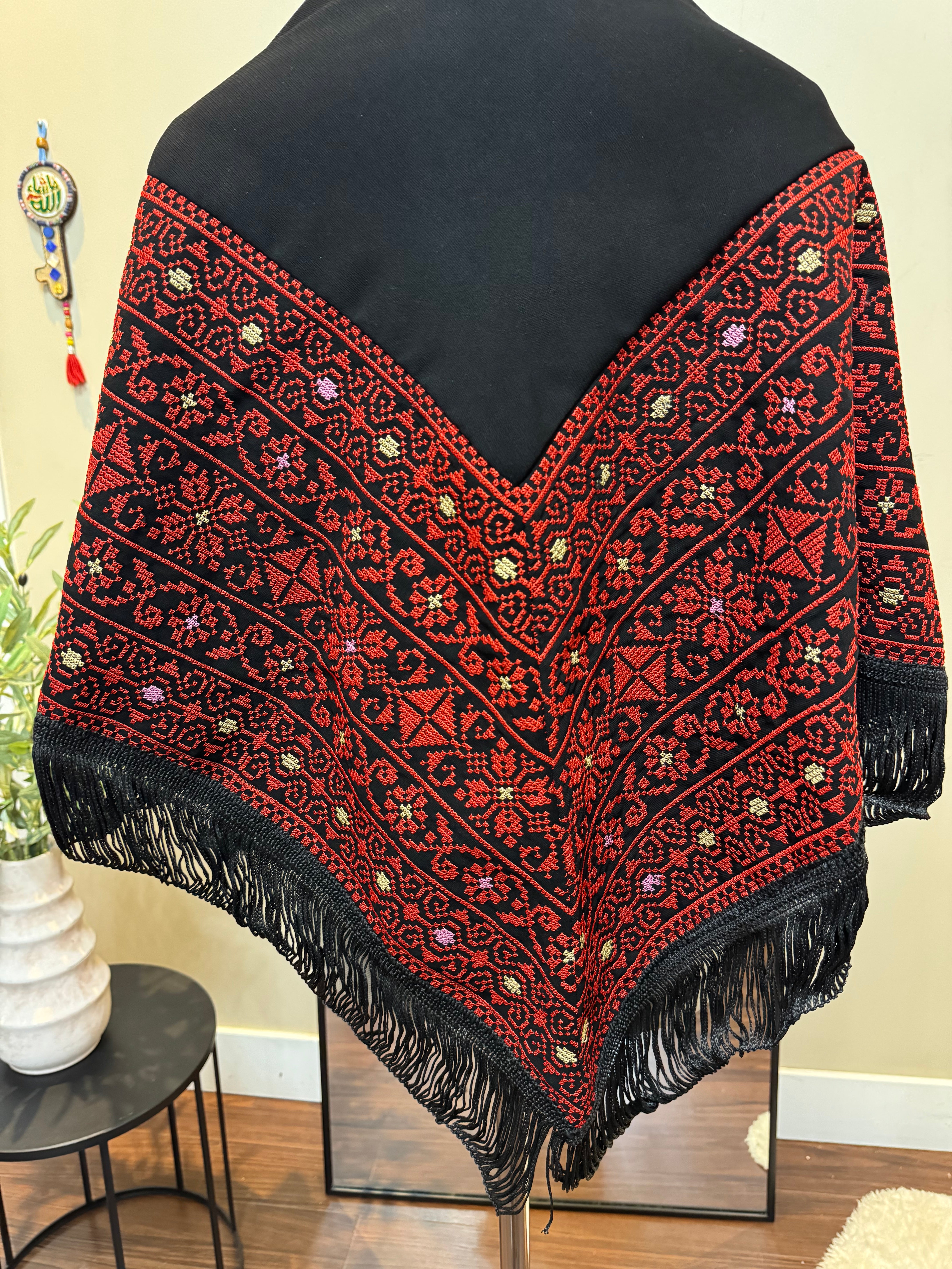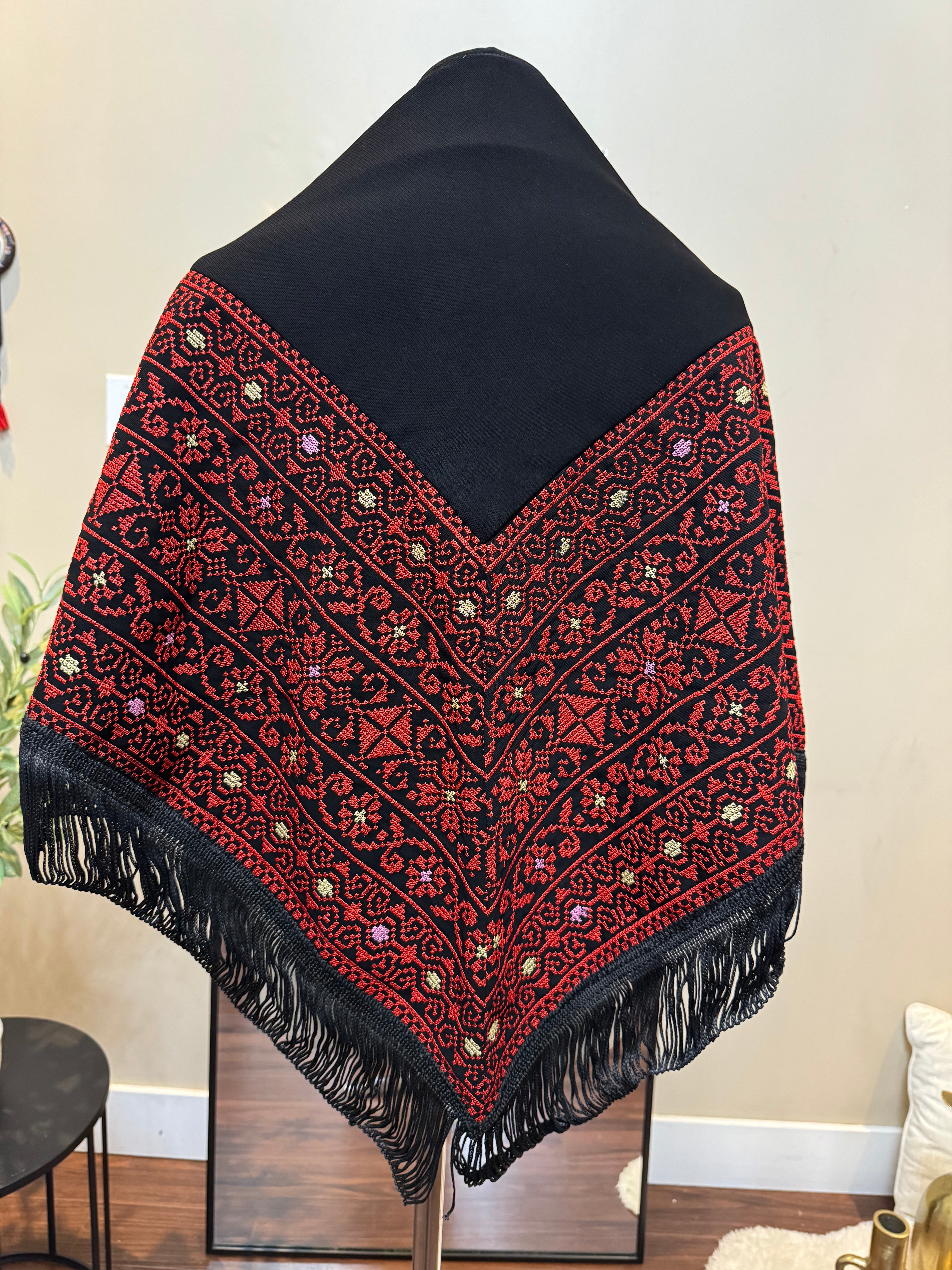 Add elegance to your style with the Palestinian Embroidery Shawl in Tatreez. Handcrafted with passion and cultural heritage, this soft and luxurious shawl is perfect for any occasion. Stand out with its bold color combination and exquisite embroidery. Experience the art of Palestine with this remarkable piece.