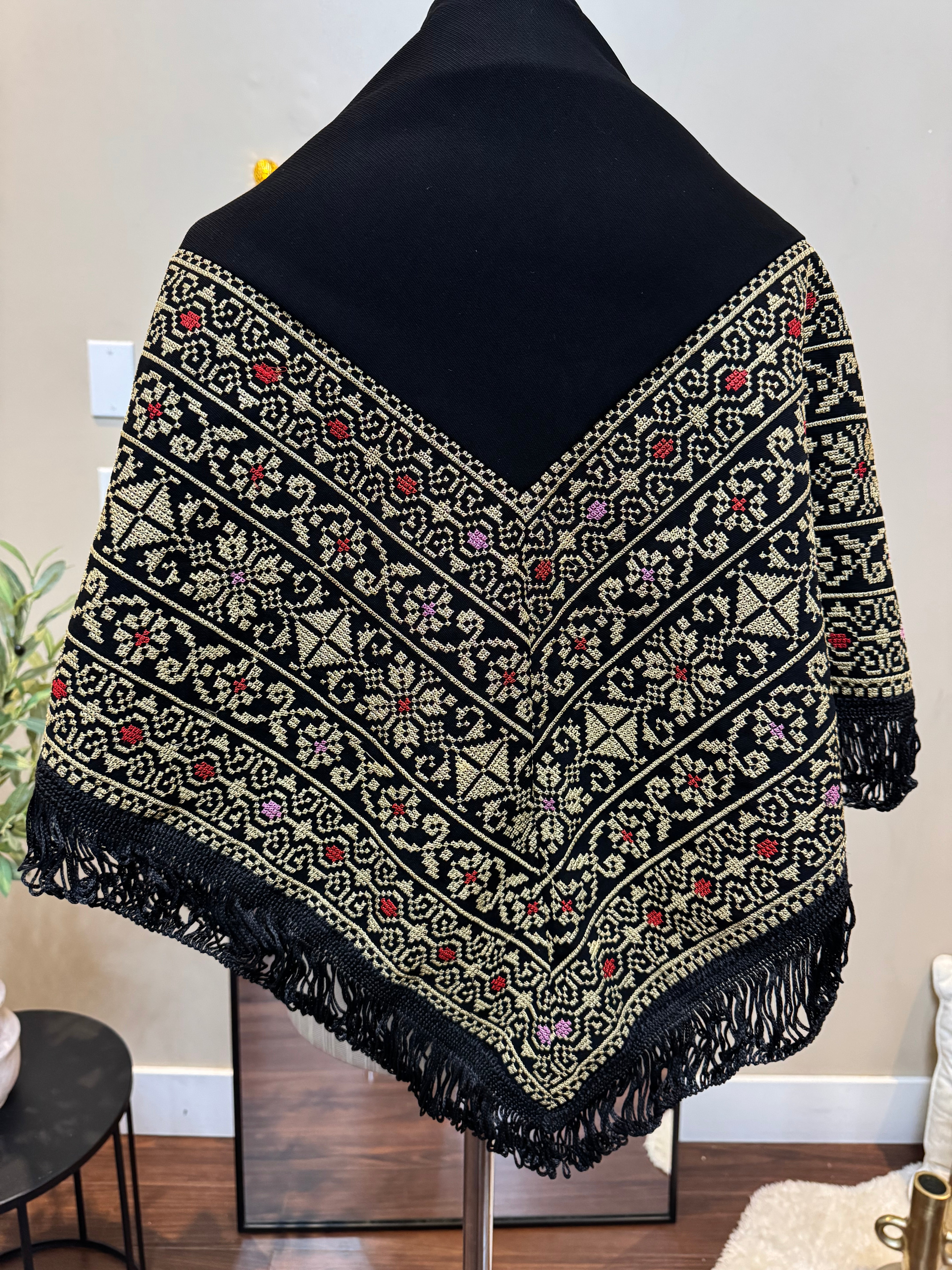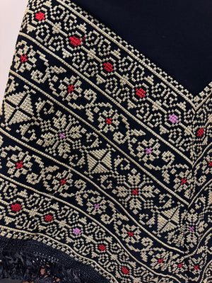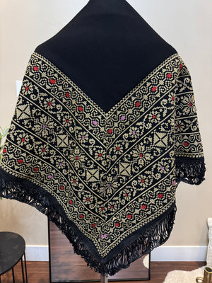 Shawl Palestinian Embroidery Black & Beige Tatreez