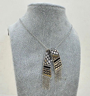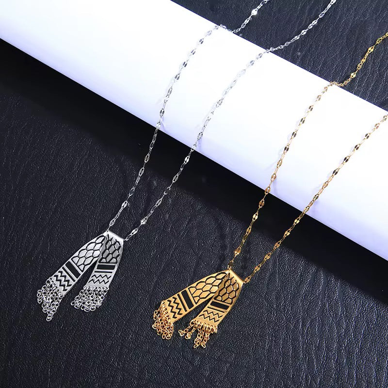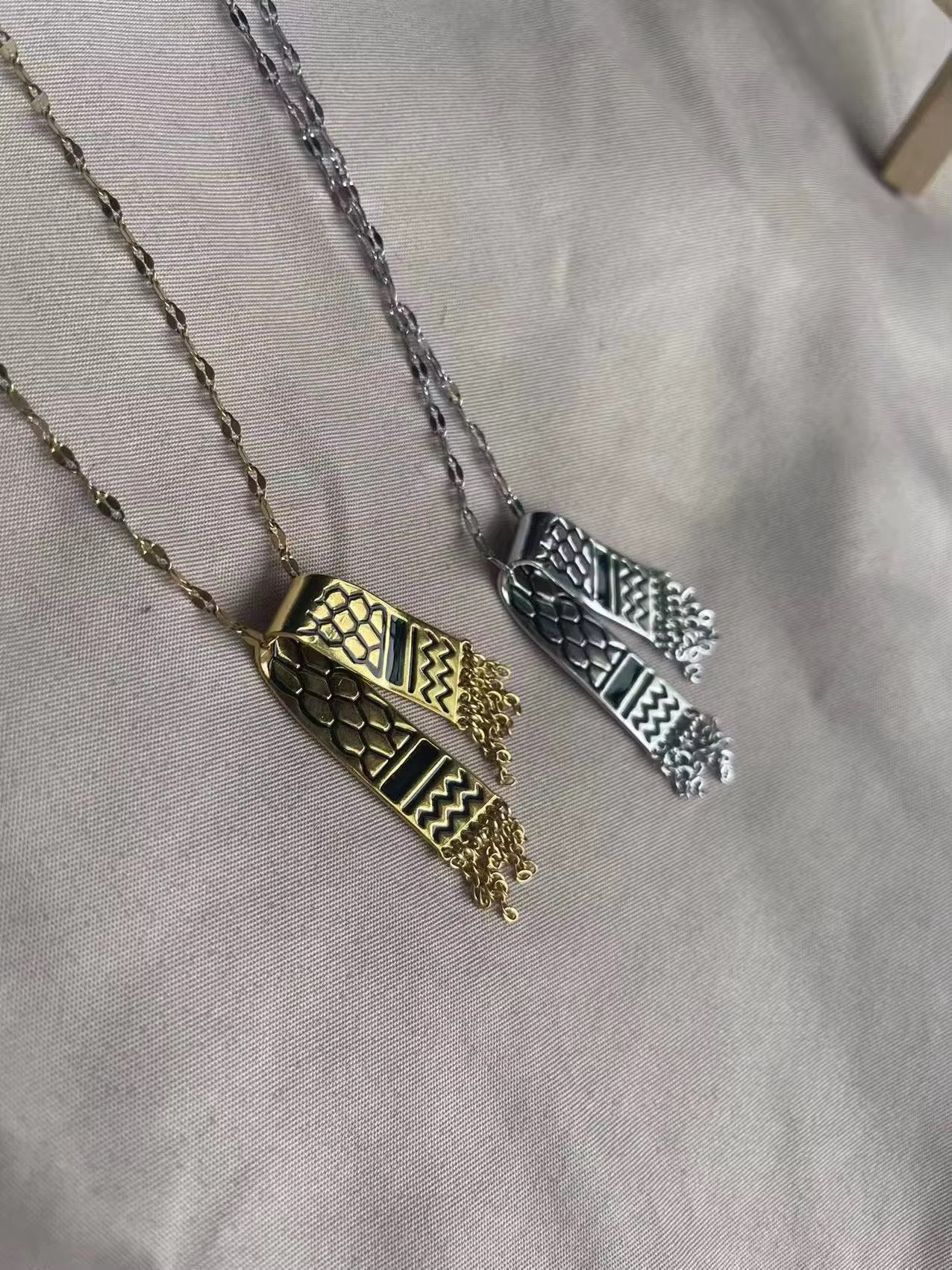 Classic Stainless Steel Koffiyeh Pendant Chain Necklace – Flat Scarf Style with Tassel Detail, Heritage-Inspired Unisex Jewelry