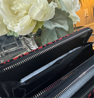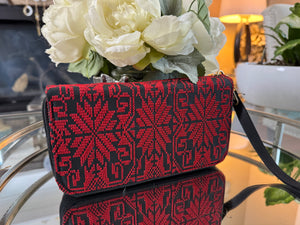 This beautifully wallet features high-quality Palestinian embroidery in a striking red and black pattern. Designed with functionality in mind, it includes two zipper compartments to keep your essentials secure and organized. A perfect blend of tradition and practicality, this wallet is ideal for everyday use or as a meaningful gift.